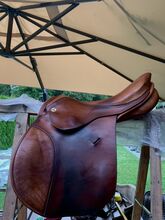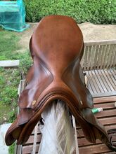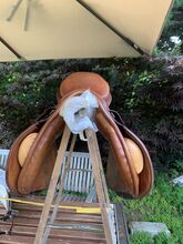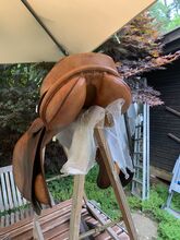 Brown jumping saddle - Jumping saddle of the brand Karl Niedersüß Price vhb Model: Piano chamber width: 28 wedge panel Strips: short Color: Mahahoni brown, light brown Signs of wear according to photos