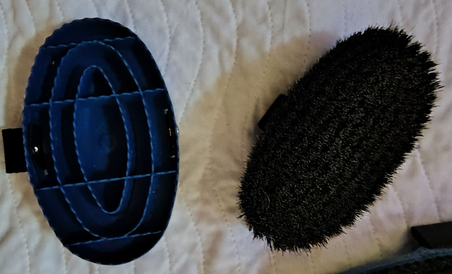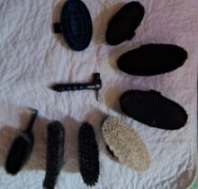 It consists of 1 "Diva" brush with lambskin pad 1 "Capriole" grooming brush 1 shiny coat brush 1 soft cuddly brush 1 "Joker" hoof scraper 1 "New Generation" soft curry comb 1 Hoof Duo Azzuro 1 mane brush small 8 cm bristle length "Small sweeper" 1 tail and mane brush small 5 cm bristle length