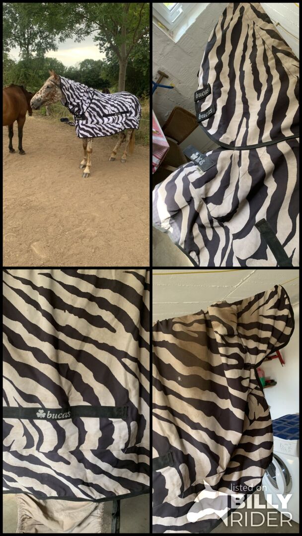 Bucas Sweet itch zebra eczema blanket 135 - Sell here my little used Bucas Sweet itch zebra eczema blanket, because we just get along better with our other blanket. It was only for a few days to wash the blanket on it and then replaced again. Has no holes or quirks! Is only dirty and is still washed if desired.