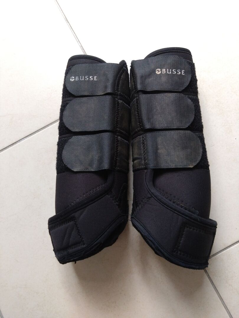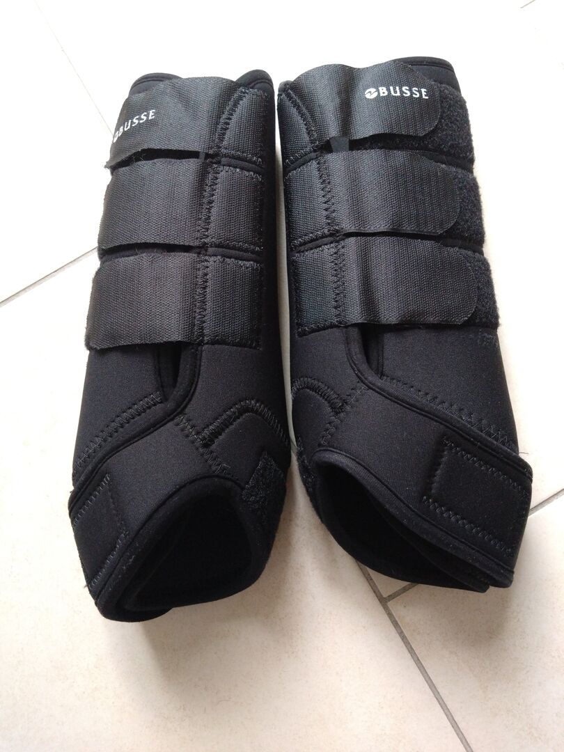 Busse Fetlock Head Dressage Gaiters WB L XL black - Busse gaiters. All Velcro fasteners are still fully intact and hold firmly. Used for dressage work, ground work and for riding out. Sit very well on the horse's leg. Preferably sold as a complete set.