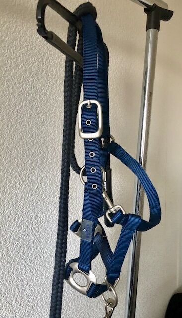 Busse halter size Full, incl. tying rope from Eskadron - Halter by Busse in blue, size Full, including tying rope from Eskadron, dark blue. See photos. The halter is unfortunately too big for my horse. Halter and rope have never been used.