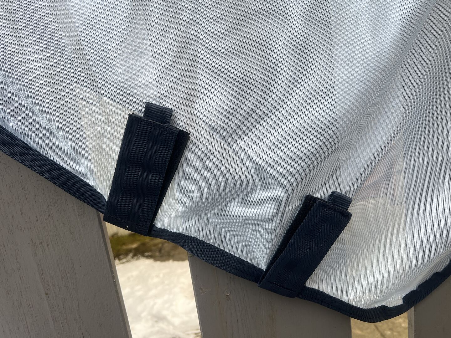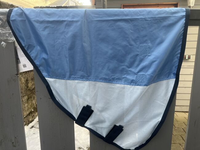 Manufacturer's description (serves as an exact explanation): - generous neck part for extending the RAINFLY rain fly rug via a stable, integrated Velcro system for complete protection in changeable weather from a mix of sun and rain - Can be closed using handy Velcro fasteners - upper neck section made of waterproof and breathable 420 denier polyester, durable and fur-friendly satin lining on the inside - Side sections made of hard-wearing polyester material with a fine special woven structure