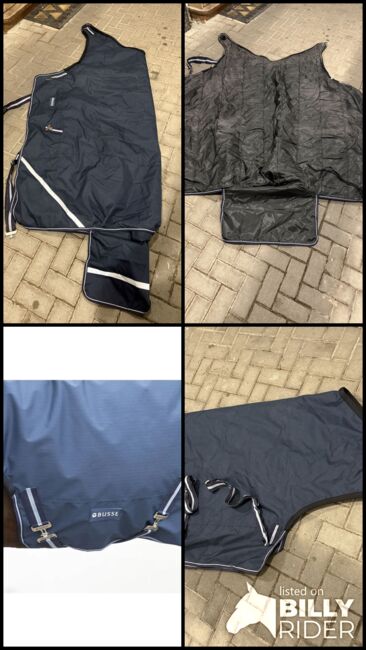 BUSSE Rain Comfort 100g movement blanket, Navy, 155 cm - I am selling a BUSSE exercise rug in the color navy and size 155cm, as it is too big for my horse. The rug has been on the horse a few times. It is intact and therefore fully functional.