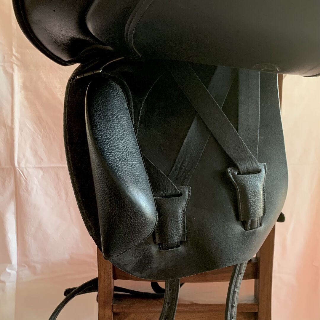 Butterfly model Claudia 18" black - I am offering a used Butterfly saddle model Claudia in the eventing version, Seat size 18 inch, Htf, saddle flap doubled, in black. Was in use with us from March 2016 to October 2018. Well-maintained condition, normal signs of wear, rear pommel reinforced with leather.