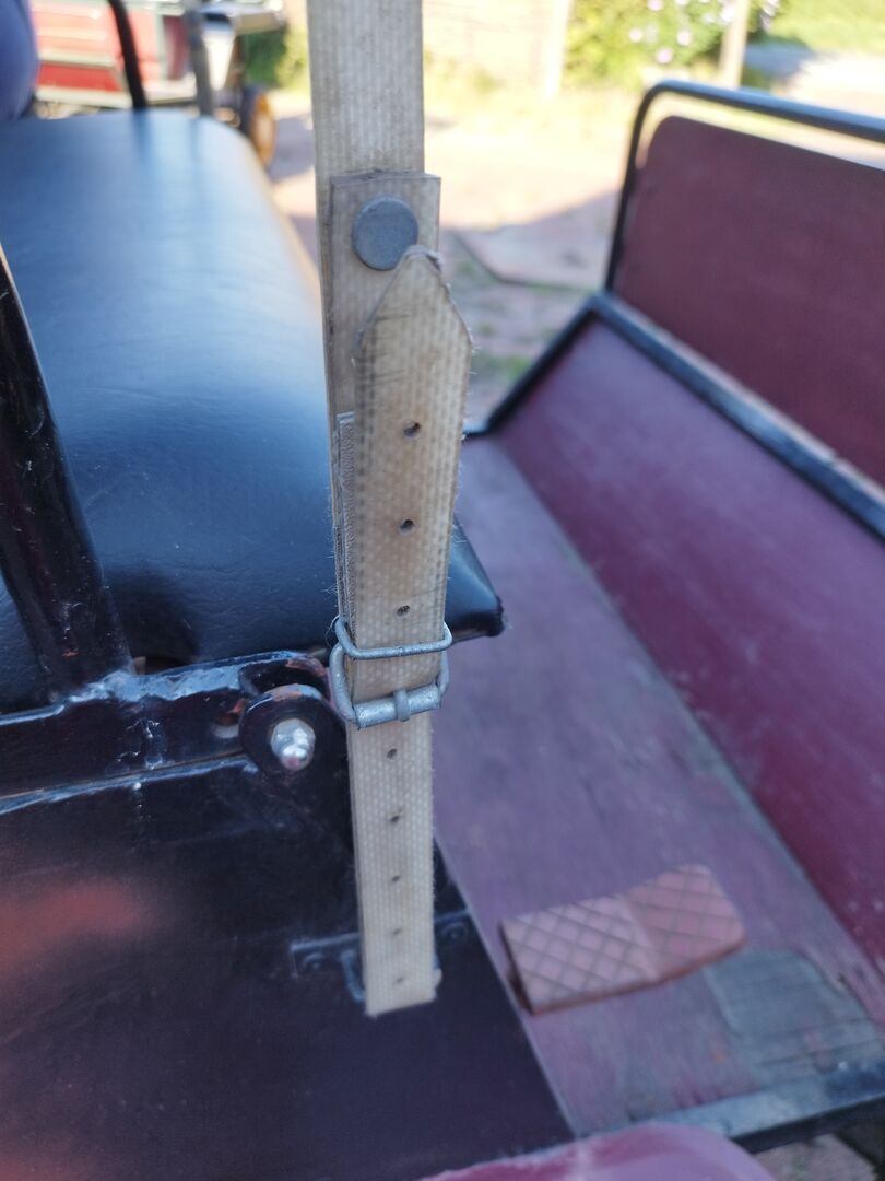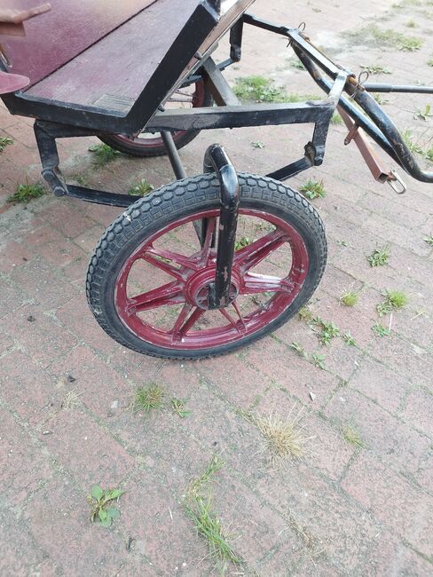The carriage is sprung and has a foot brake. It was technically overhauled two years ago and then unfortunately no longer driven due to lack of time and horse change. Garage location (dry) Seat height is approx. 102 cm Length of carriage without fork approx.: 217 Carriage width approx.: 133 Height - highest point approx.: 191 Fork shown incl. Seat width approx. 90 cm Wheel height with tires approx. 55 cm (17 inch I mean) Weight according to scales approx. 170 kg.