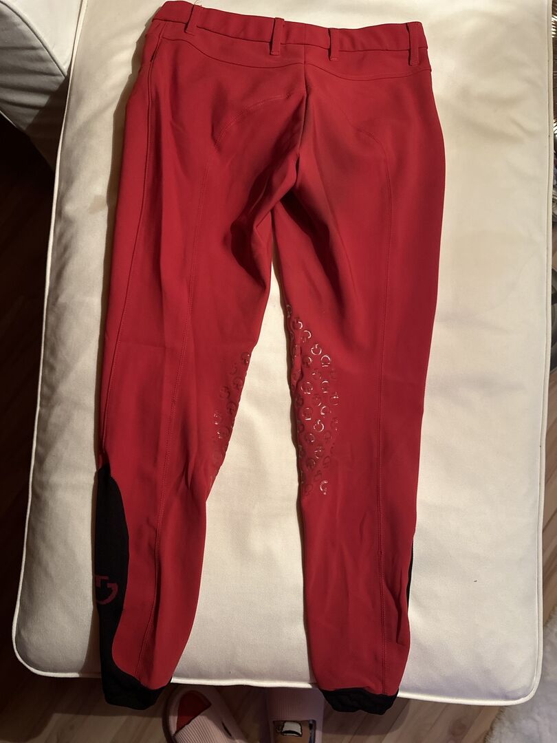 Cavalleria Toscana breeches size 34 in red - Hello, I sell a ladies breeches from Cavalleria Toscana with knee grip in the color red. The breeches are in very good condition and has only slight saddle discoloration in the knee area as well as on the buttocks, grip is still completely there.