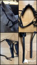 The cavesson is made of high-quality black Biothane, making it robust, easy to care for and supple. It has a three-part bit that is softly padded with neoprene so that the noseband fits snugly around the horse's nose. We have also used the cavesson for work in hand in addition to lunging. As this cavesson has proved so successful, it was gladly lent out, so we have made a few extra holes in the straps! Please check the possible adjustments. Apart from the additional holes, the cavesson is unchanged and in immaculate, well-maintained condition.