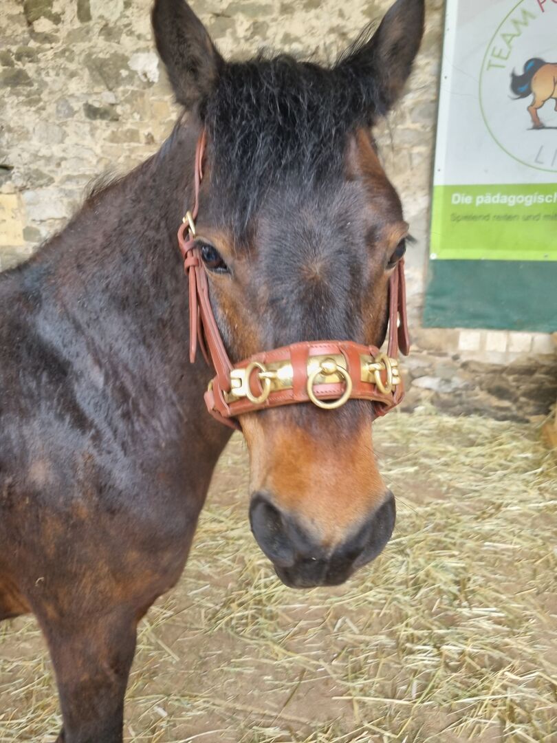 Cavesson from Loesdau - Cavesson with three-piece noseband in gold. It has hardly been used and is in very good condition. Size is pony/ thoroughbred.