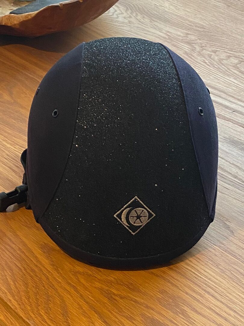 Charles Owen riding helmet Glitter Navy. Size 57cm as seen in pictures. Very much like new however had been worn a few times but doesn’t suit my face shape. Never been dropped or fallen off in and always in a helmet bag. Any more pics or questions just ask.