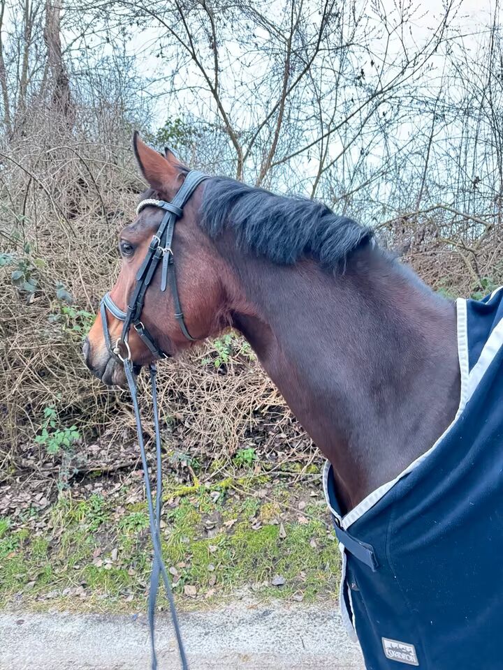 Charming dressage horse - Westphalian bred mare with approx. 1.60 m height from 2019, bred by By Your Side out of an Abanos dam. A promising, extremely people-oriented young lady who is now looking for a suitable person for her future career. ⸻ State of health & X-ray The mare is clinically flawless, so far completely unremarkable and shows no lameness or problems. - Fully vaccinated, teeth freshly made - well-behaved at the farrier, goes barehoof and has never been shod - X-rays available Character & Behavior The mare is an affectionate, cuddly horse who is very attached to people. - Always friendly in handling, never vicious or dangerous - Partly still a little environment-oriented, so she would like a safe, clear hand to give her orientation - Already knows away training and has been to a show once and can be loaded onto a transporter or trailer She is currently being ridden in riding lessons by a young girl without much riding experience and is super well-behaved there. She has also ridden with beginners on the lunge line and is totally well-behaved. ⸻ Training & suitability I have had her under saddle for almost three years and I took her on due to time and health reasons of the previous owner. She knows: basic dressage training Pole work (she loves it) Small jumps Work on the arena & in the hall cross country A great horse that will certainly develop well with further support. We are looking for the right person for this horse - someone who enjoys training a sensitive, lovable and talented horse. She will therefore be sold for a small fee into good, suitable hands. A loving family/person and the best place are more important than price. ⸻ Viewing Viewing is possible at any time by arrangement. 41569 Rommerskirchen