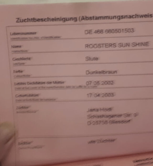 Pedigree trotter x Tennessee Walking Horse. Born April 2003, STM. Approx. 163/165, not suitable for sport. Has only ever been ridden for leisure by rather less good riders. But a well-behaved horse, which can also be ridden off-road with less experienced riders without other horses.