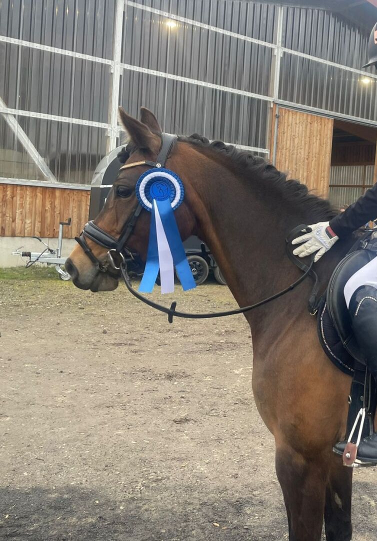 Lilli Lou is trained to E level in both dressage and jumping and has already been placed at competitions under a young rider. Under the rider, she shows a pleasant go and pulls well at the jump. She has the will to win and gives her all. She goes into the field both alone and in a group and shows herself to be attentive and absolutely confident in the field. A Pon< perfect for leisure time or as an entry into competition sport.