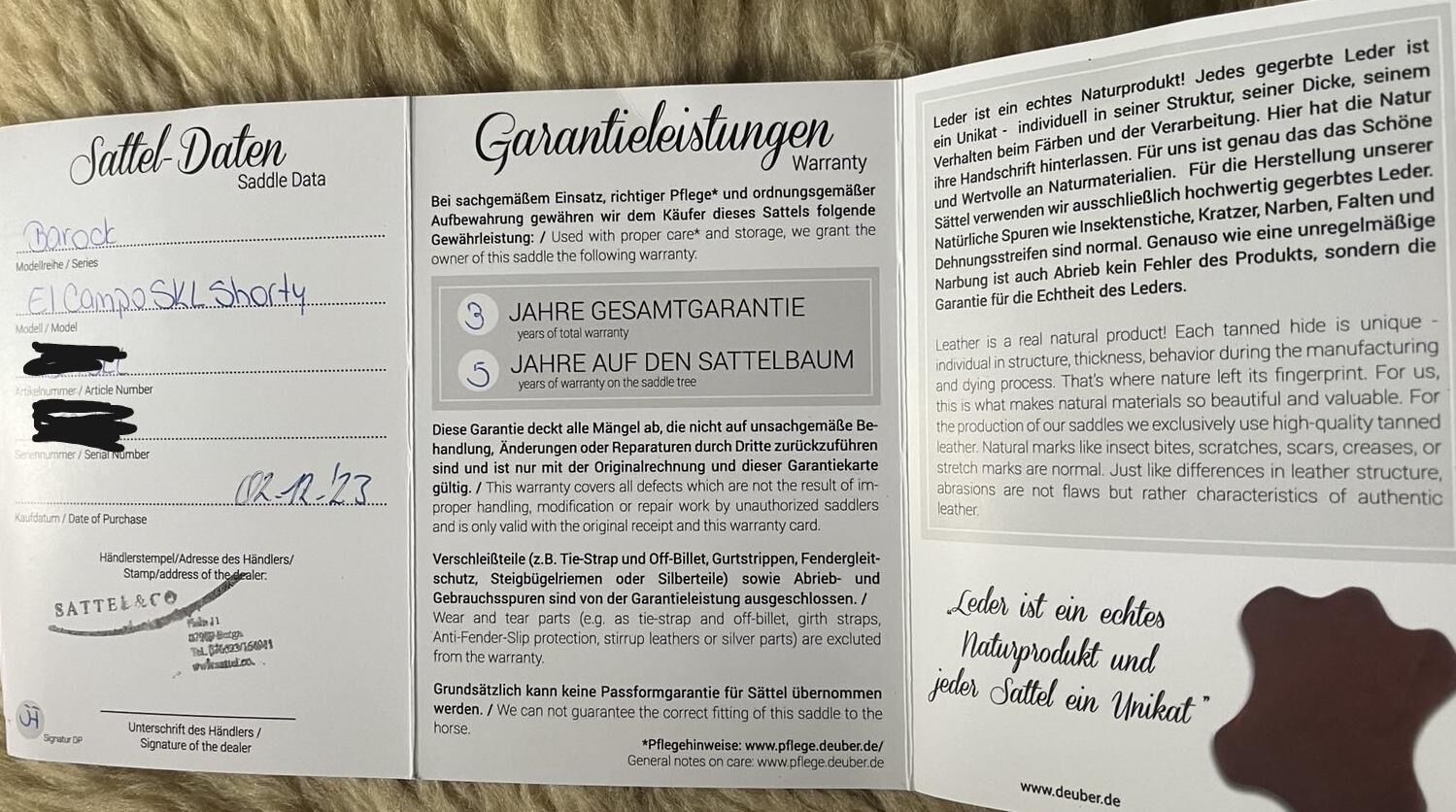 Christmas present for your horse - Ideal for working equitation, baroque horsemanship.... I am offering you my beautiful saddle which has unfortunately only been used twice. It is suitable for ponies with fairly short backs. Seat size 3, corresponds to approx. 17.5''. The black suede is trimmed with brown leather for better grip. Papers are available. The original price was just under 3500€.
