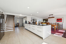 The entrance area welcomes you with a spacious entrance hall that provides direct access to the stables. Two steps lead up to the spacious living and dining area with open kitchen. The warm-air fireplace provides pleasant warmth and creates a cozy atmosphere in the living room. In the basement there are practical storage rooms with natural flooring, which are ideal for storing wine or other provisions. The boiler room is also located there, with three 750-liter oil tanks.