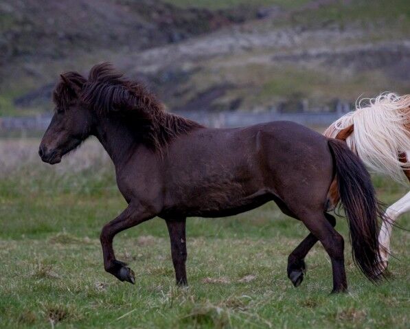 Nova is a friendly mare with a strong conformation but an old Icelandic type. At around 1.32, the "little one" comes across well under saddle because she is very upright. She is also fun to work with in other ways.