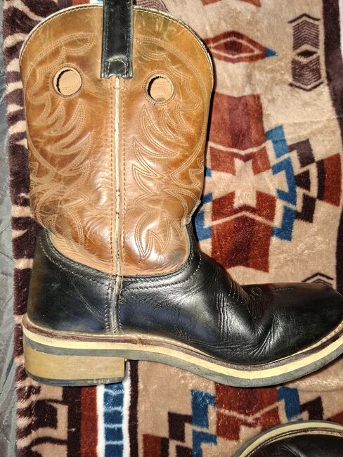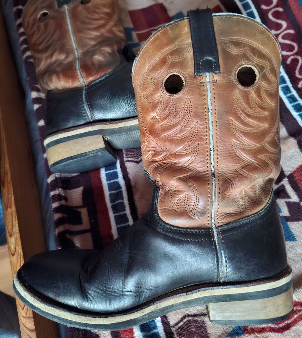 The boots are worn and in good condition.