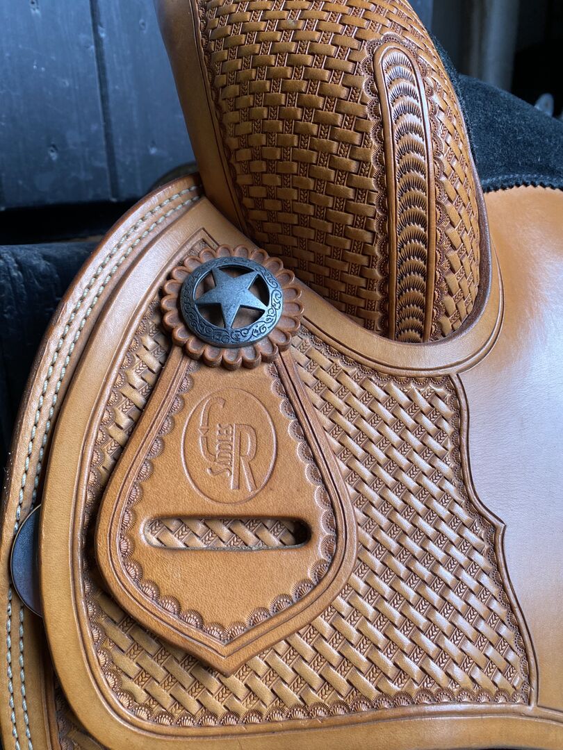 CR California Ranch Saddlery 16 inch - I am offering the CR saddle pictured here for sale. It is a Definition with FQH tree (approx. 2 mm wider than the QHllA) A matching breastplate and the complete back cinch are also included. A great saddle, incredibly comfortable, ideal for work on the track and rides. The saddle is in very good used condition and is only kept in the saddle bag.