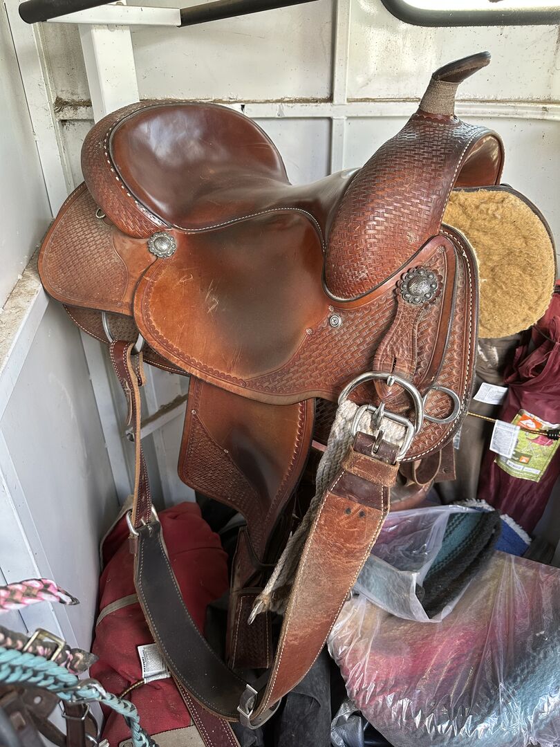 Crates reining saddle for sale. Used but in good condition. May need a concho or 2, but that’s an easy inexpensive fix. We will pop it before it goes. 15.5” seat 7” gullet 27” skirt (need to double check) My daughters colt has outgrown the gullet so it’s gonna go to its new home! Firm on price. Shipping available at buyers expense