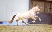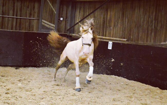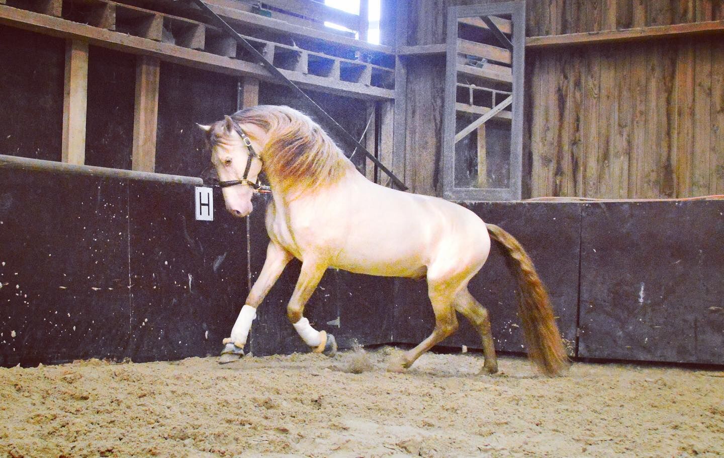 Cremello 6 year old PRE gelding with lots of potential - Urbano Cremello is a 6-year-old gelding of the noble Pura Raza Española breed who embodies classic Spanish elegance in every movement. He combines pride, expression and natural presence with an impressive willingness to work and an honest character.