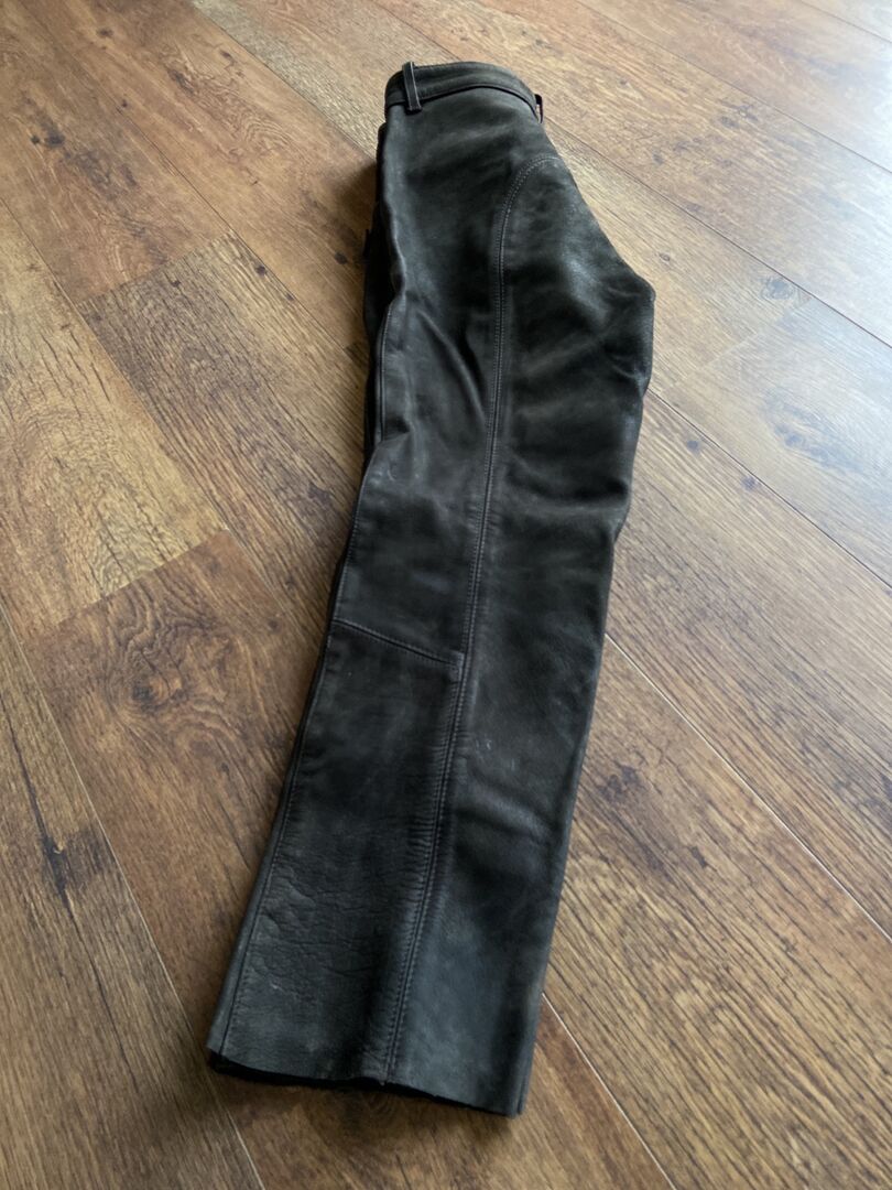Dannecker leather breeches- Jodpurhose - Leather breeches made of velvety cowhide nubuck leather from the company/brand Dannecker Collection. Color dark brown, plate stitching, belt loops in double waistband, front leather pants pockets. Zipper & button. Hardly worn, therefore very good condition - see photos! Size 30 side length 98 cm, leg length inside 70 cm, waist width about 38 cm simply measured . Shortening is possible by simply cutting, folding & gluing.