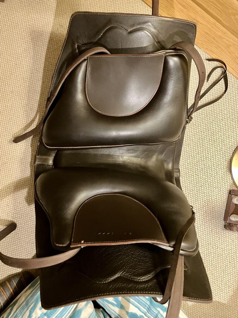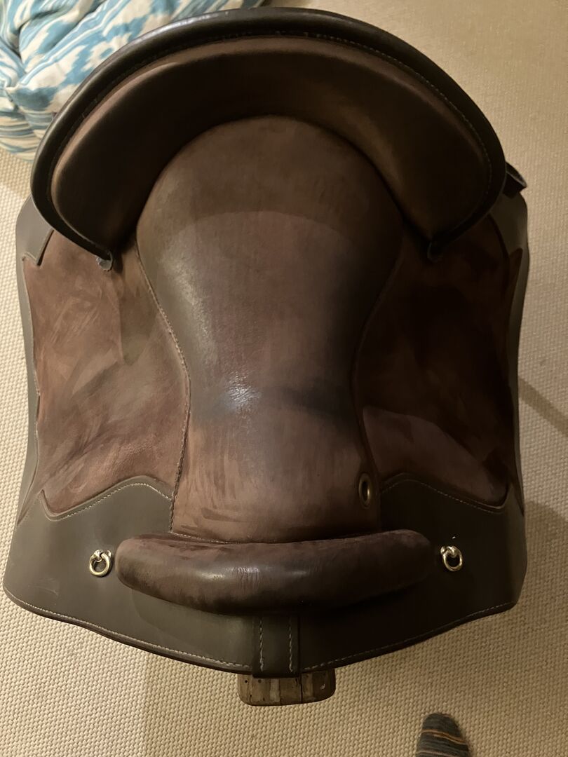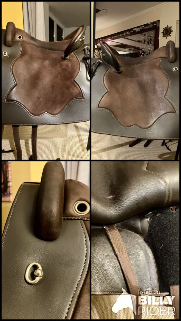 Size S2 Ultraflex synthetic tree Gullet plate individually self-adjustable (with an Allen key) Saddle leather African/dark brown Seat nubuck leather/dark brown Brass fittings SKL - soft knee pad Small gallery at the front Stirrup bar extra fittings front and rear two latigo strings at the front and two at the back two staples at the back NP 2.850€ incl. Deuber saddle pad