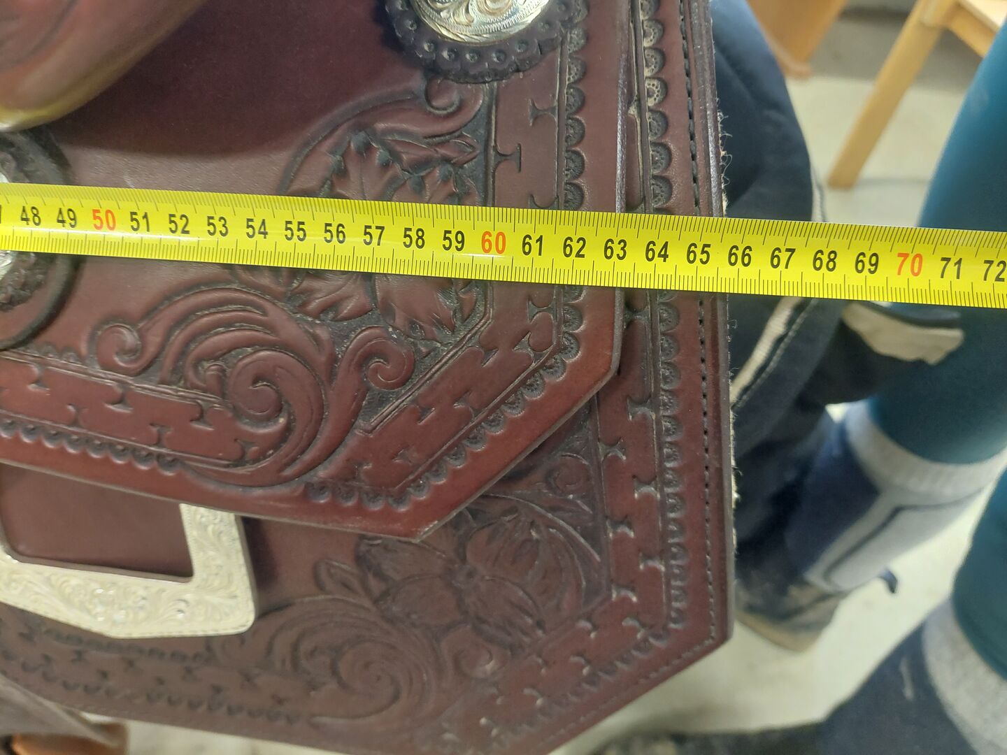 Seat area 16 inches Was on a wide Painthorse, you can adjust this model to be able to adjust the contact surface on the horse's back again and again, is now a well-known model from Deuber. Wooden stirrups High quality silver fittings Suede leather seat Equitation seat (deep seat) For more detailed information please send me a message.