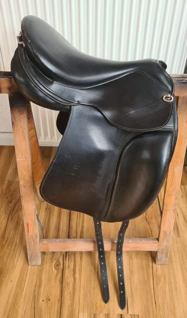Weight: approx. 5.5 kg Saddle length: 17.5" approx. 48 cm, Seat size: 1 Saddle flap length: approx. 55 cm. Color: black Gullet plate: Size 4 is currently fitted