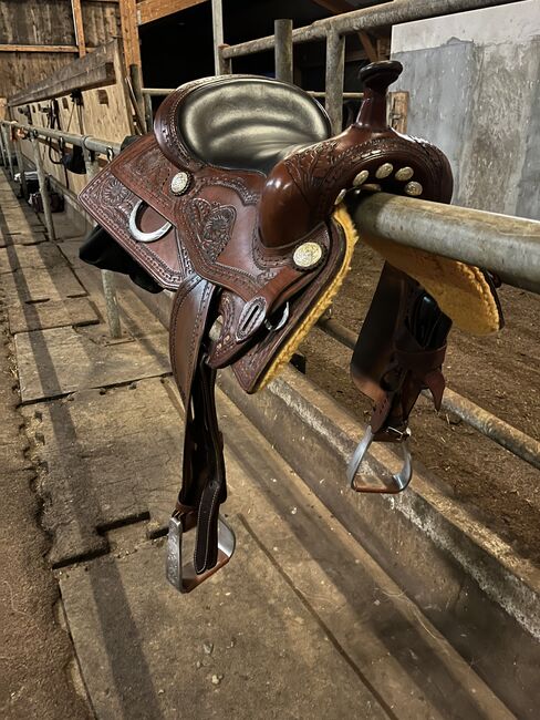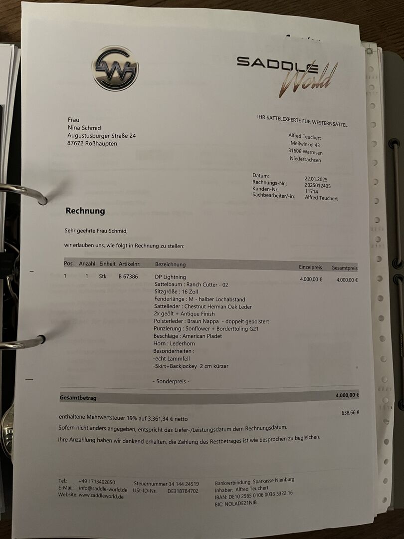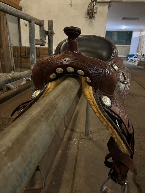 Deuber Western saddle DP Lightning - Selling my very comfortable Deuber western saddle. Unfortunately it no longer fits my QH. The saddle has always been stored in a cupboard with a cover and is as good as new. The seat is double padded. Warranty certificate available. Shipping is possible!