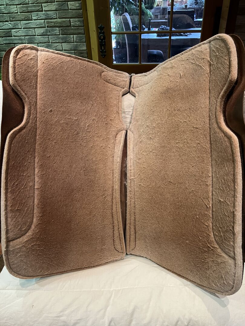 There is also a shock absorbing felt pad in black (still being cleaned). There is also a 34" cord girth made of merino wool in brown (is also still washed :D ) and a black saddle pad from D&P in addition.