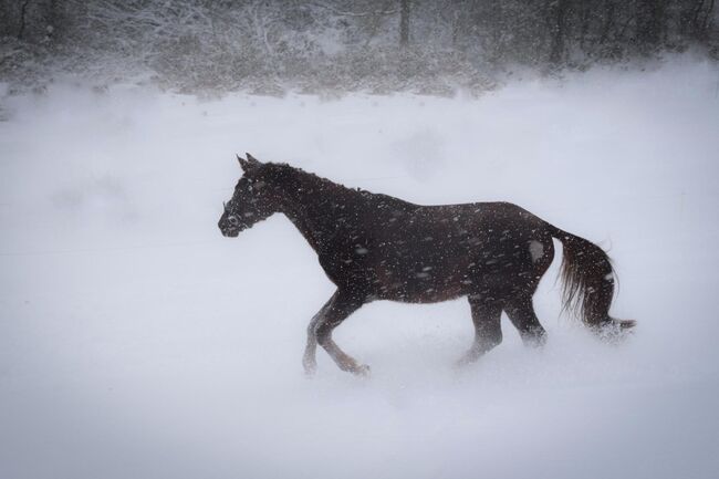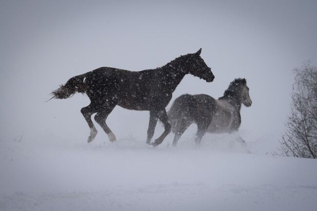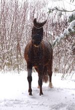 Er ist longiert, halfterführig und hat keine hengstigen Unarten etc., er steht mit einem Wallach im Offenstall, an schlecht Wetter Tagen in der Box (neben Stuten).