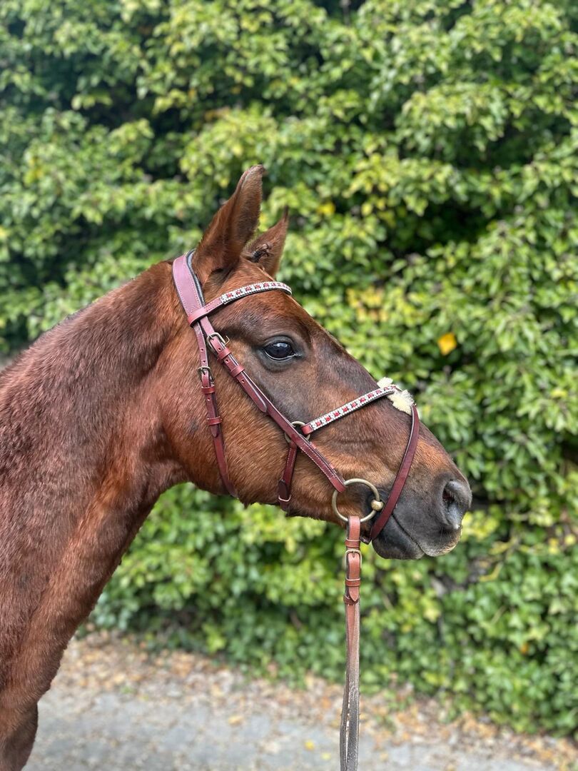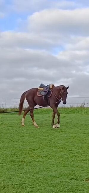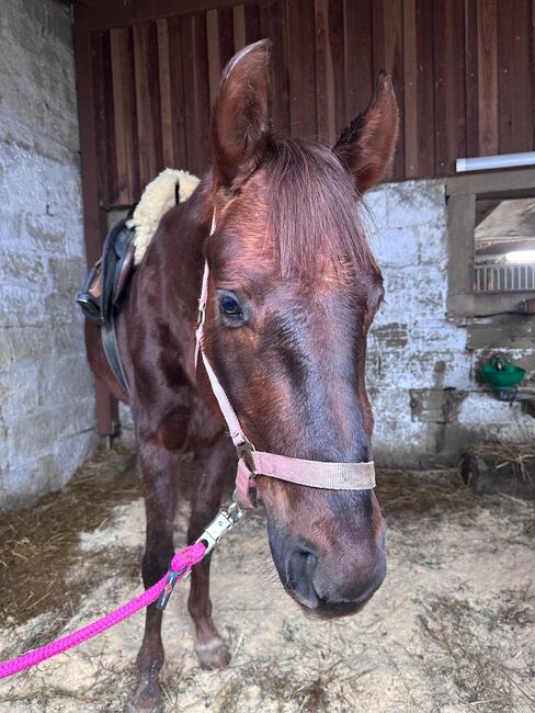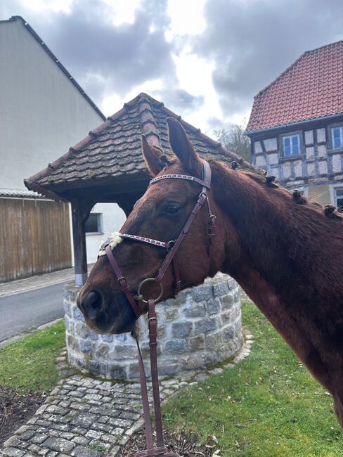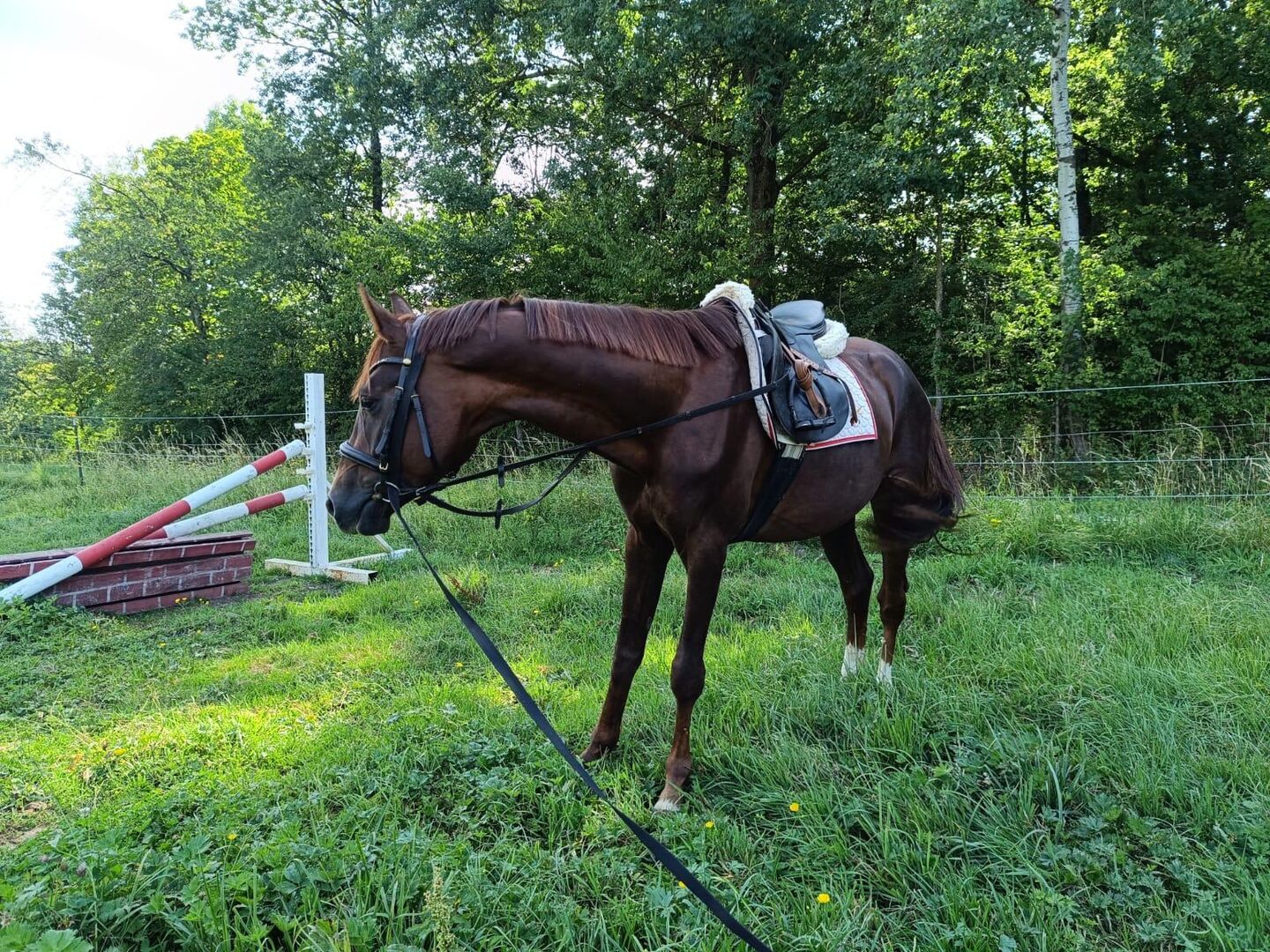 Lieber 5 jähriger Hengst von Baron (Benicio-Belissimo M) x Dornröschen (Dancier-De Niro) in der Farbe Fuchs mit weißen Söckchen an der Hinterhand :-)