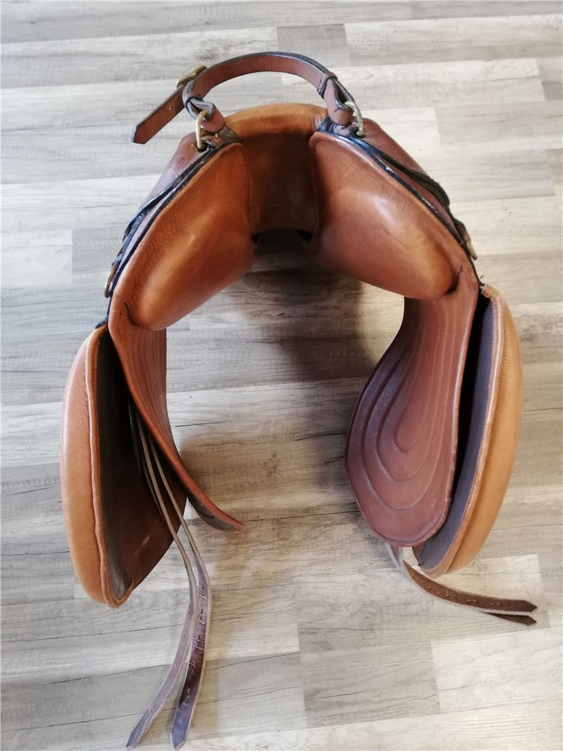 Distance Saddle 16.5 Seat mean chamber width (approx. 30-33) Cushionable cushions, chamber width only limited and only adjustable by summer (all specifications according to manufacturer) The saddle is absolutely as good as new, despite its age (BJ 2002), hardly signs of use. When you touch it, you think it's new, that's how good the leather is. I hate to give it away, but it doesn't fit any of my horses.