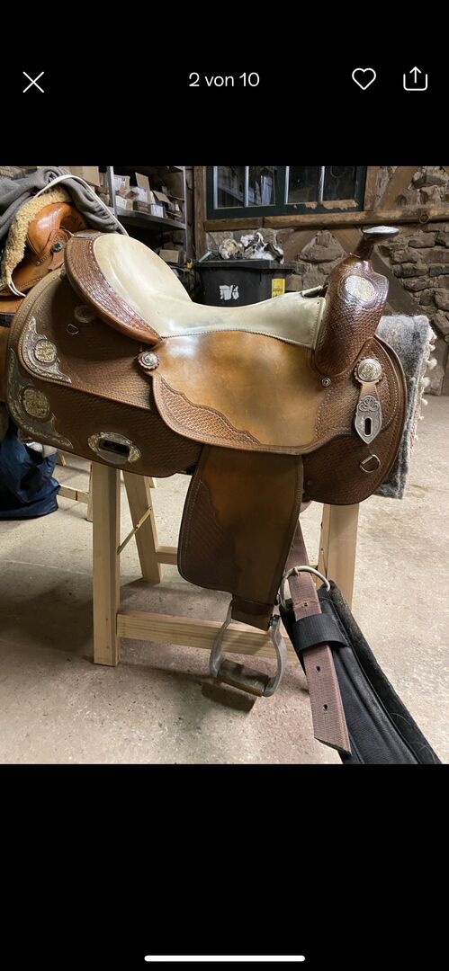 Double Dee western saddle - Beautiful and beautifully hallmarked western saddle with silver fittings for sale. 16", no damage, normal signs of use.