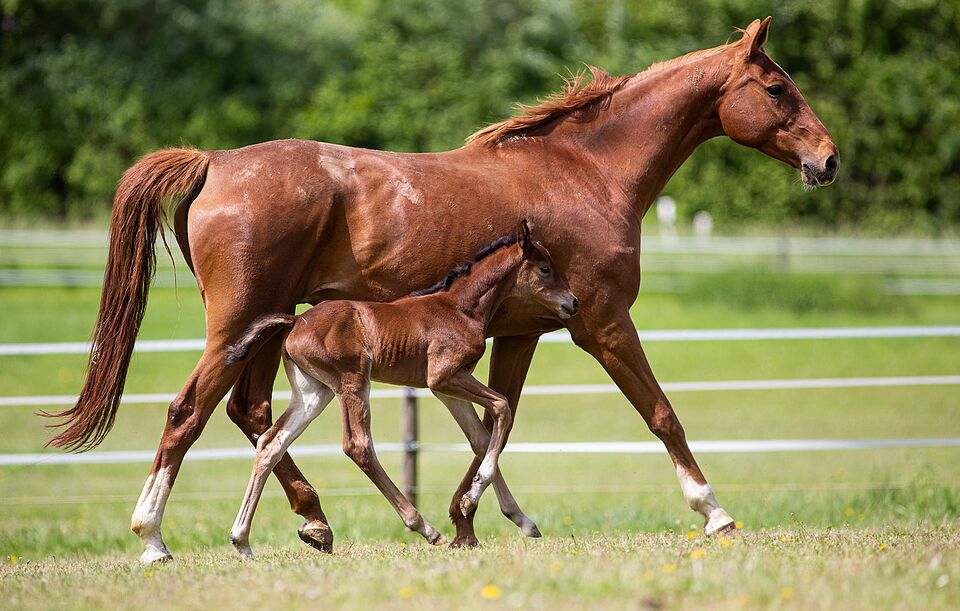 The pictures show her colt by Colorit Z (chestnut) and her filly by Decurio (bay). The filly is with me and can be viewed.