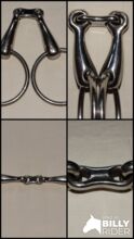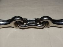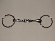 Double jointed water bit 14 cm solid bit for snaffle 2 cm thick plate double jointed - Little used, double jointed bit for sale. Size 14 cm. Approx. 2 cm thick. Inner ring diameter 6.6 cm. Weighs 293g. Centerpiece is a plate. Good for training young horses. Please see pictures for condition, thank you!