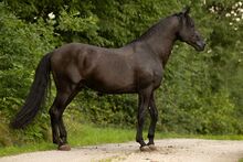 Dragon is homozygous for black and carries the pearl gene, which means that his offspring from a mating with a chestnut, bay or black mare will be either bay or black. If the mare is a carrier of a lightening gene (cr, prl, ch), the foals can also have a single or double lightened special color. It is also possible to breed an Aztec from a mating with a Paint or Quarter Horse mare.