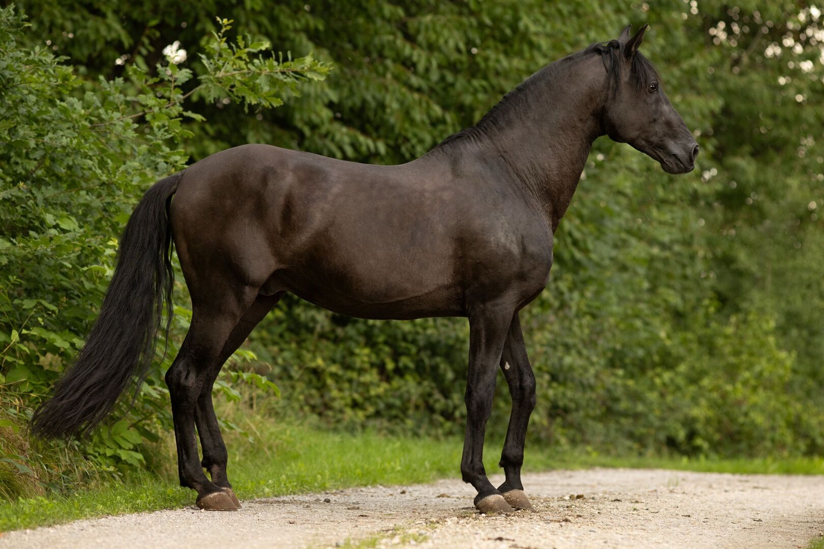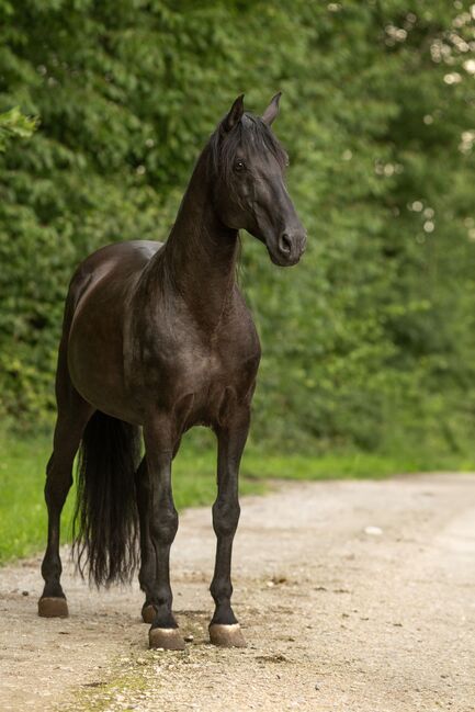 ...an incredibly sweet and attentive gentleman. He learns super fast, likes to join in and always wants to do everything right. He has done a lot of ground work and walks, and has also been ridden in Spain. He is courageous and has strong nerves and is interested and curious about his surroundings. Not only his gentle character with depth characterizes him, but also his noble appearance is very impressive.