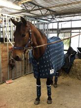 Dream combination sweat rug with matching bandages - I am offering a great set consisting of a sweat rug (145 cm) with matching bandages and bandage pads (new). The rug and bandages have been on the horse once. We have realized that we are not "bandage types" and the set is too nice for lying around,