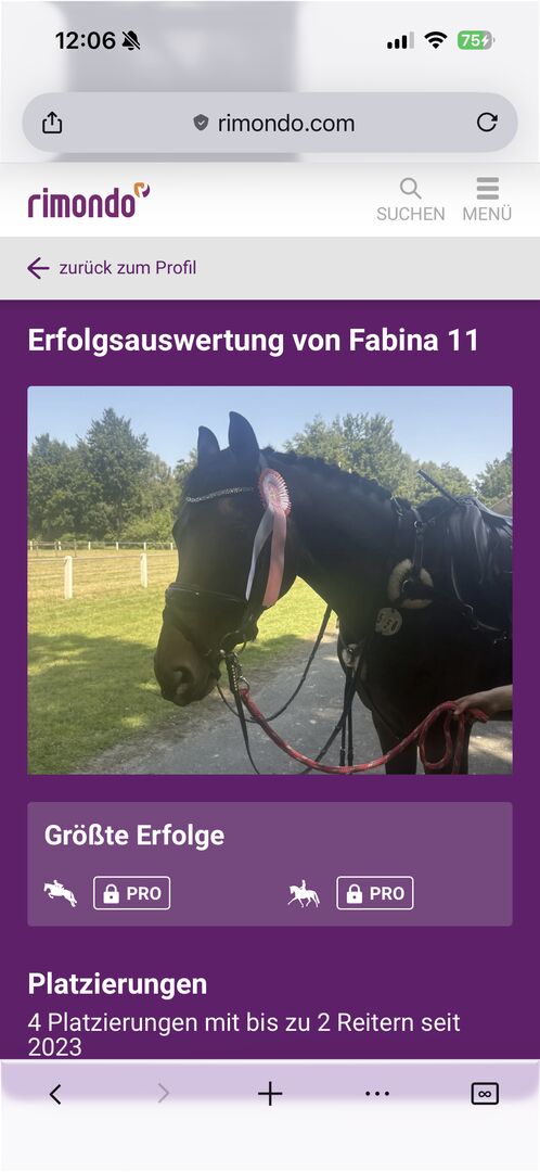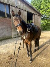 Dream mare / Westphalian mare / 8 years old / A* won - With a heavy heart I am selling my 8 year old Westphalian mare Fabina11, we call her Fabia or Fabi. Unfortunately I can no longer do her justice for health reasons. My then 12 year old daughter also rode her. She has a lot of go but is always easy to handle, no kicking, bucking or mounting! She likes to go out on her own, but also in a group and likes to be at the front. She has competition experience and has been placed and won up to A*. There is plenty of room for improvement. Great pedigree. Also interesting for breeding. Sire For Dance / mare by Sir Heinrich Old. She has wonderful gaits. Dressage is her thing, but she also jumps well. She also enjoys lunging with poles and ground work. She is regularly vaccinated, wormed, has her teeth done regularly and has also had an ostheo 2-3 times a year. Loading and trailer driving is also no problem, she can be loaded alone. I would like to sell her with her customized Ikonic dressage saddle (which was 3300€) bridle, all halters and also her blankets and fly mask, bandages and cleaning case with accessories, the accessories just under 4000€ are then VB