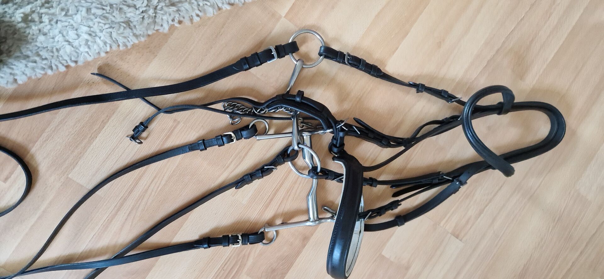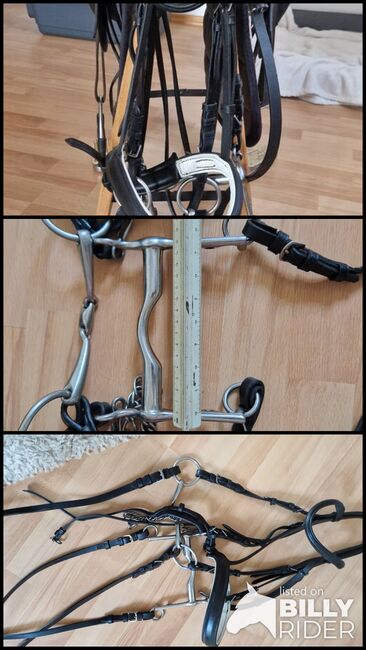 Dressage curb bit with 2 Sprenger bits, 14.5 made of high quality leather - I am offering a complete dressage curb bit made of very high quality leather, carefully assembled from individual parts in a renowned specialist store. The curb bit has only been used a little and is in a correspondingly well-kept condition.