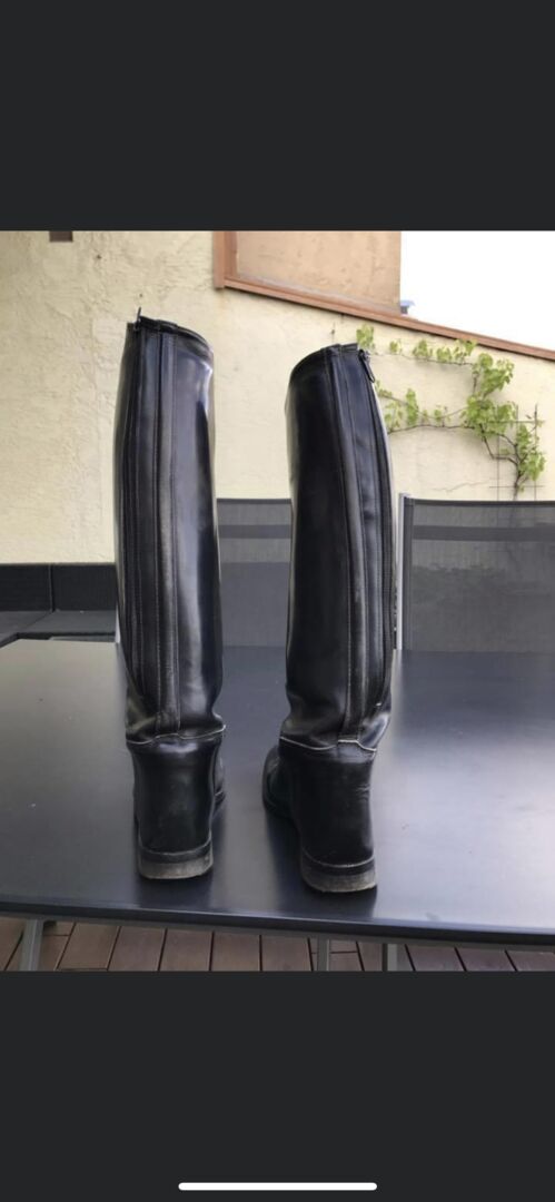 Dressage leather boots from Derby - Sell top condition Derby dressage boots. Zipper was subsequently inserted by cobbler therefore probably 1-2 cm wider. Size 8 width 38 (+1-2cm) height 55. can also be sent. With me they just collect dust because they have become too tight