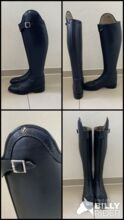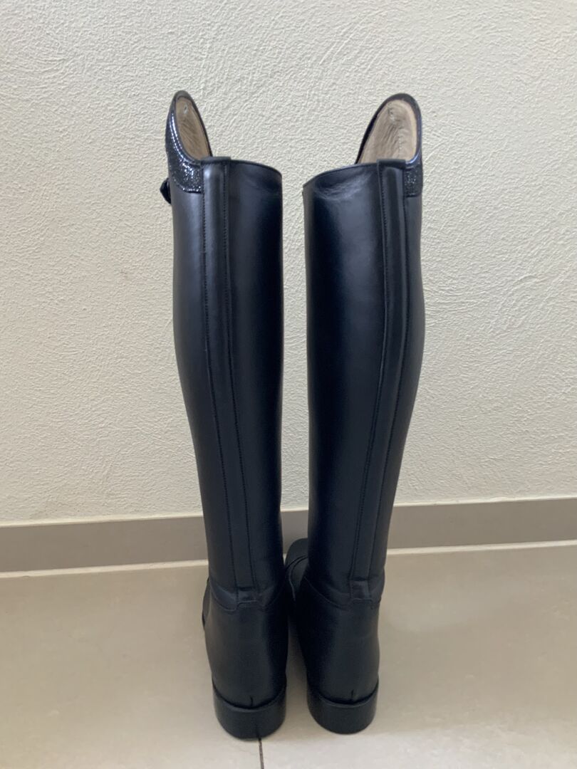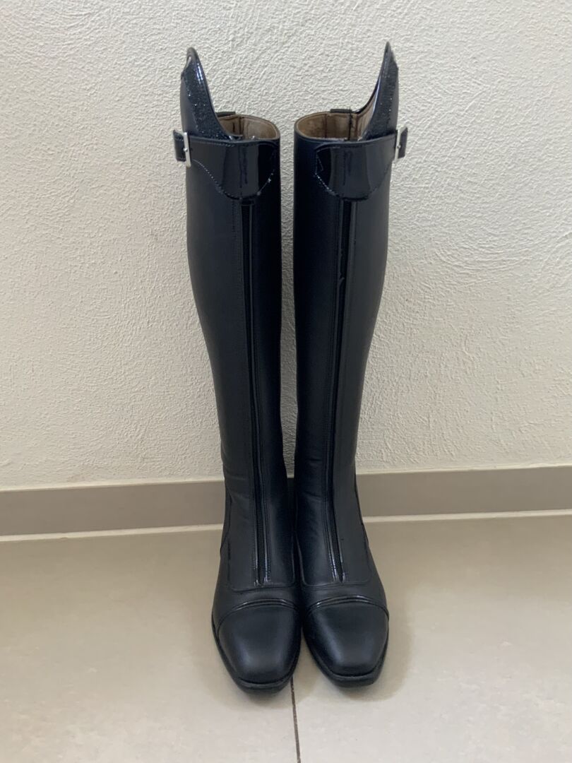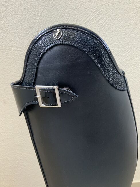 Dressage riding boots - We are selling brand new dressage riding boots size 40 with patent stitching and patent buckle. The boots are made to measure, but unfortunately do not fit and are therefore for sale.the boot is measured up to the arch 53 cm high and inside 46 cm.the calf is 38 cm. the boots can be tried on. The NP.was 679€!