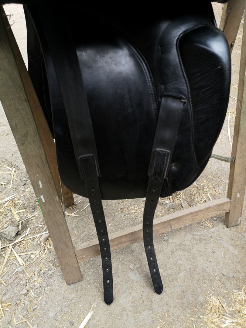 Dressage saddle 16,5 inch, Prestige Doge - Sell here a dressage saddle of the brand Prestige, model Doge. The saddle is in very good condition and very well maintained. He has a deep seat. The saddle was on a 1.65 cm tall gelding, with high withers and long back. The saddle has been inspected by the saddlery and is newly padded. It is only being sold because I have switched to a jumping saddle. The chamber width is 32.