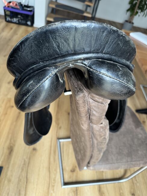 Dressage saddle - I am selling a well-used dressage saddle. Unfortunately I can't say much about it as the saddle came with the horse when I took it over and fitted perfectly. The saddle was on an Irish thoroughbred mare with a height of 1.55 cm and a petite, sporty figure.