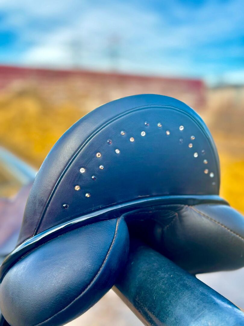 Dressage saddle brand Dresch - 17,5 - brown, patent & rhinestones - 1.300€ VB - For sale is a high quality dressage saddle from the Dresch saddlery, a custom-made saddle and a genuine one-off from a German manufacturer.