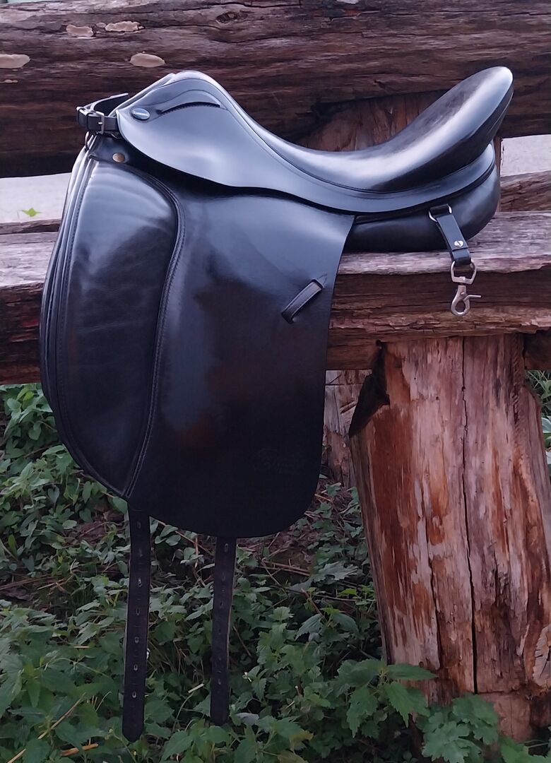 Dressage Saddle Euroriding Emilio by Prestige - Little used, well-maintained saddle with slight signs of wear. Previously mounted on a narrow American Paint Horse. Chamber width 32