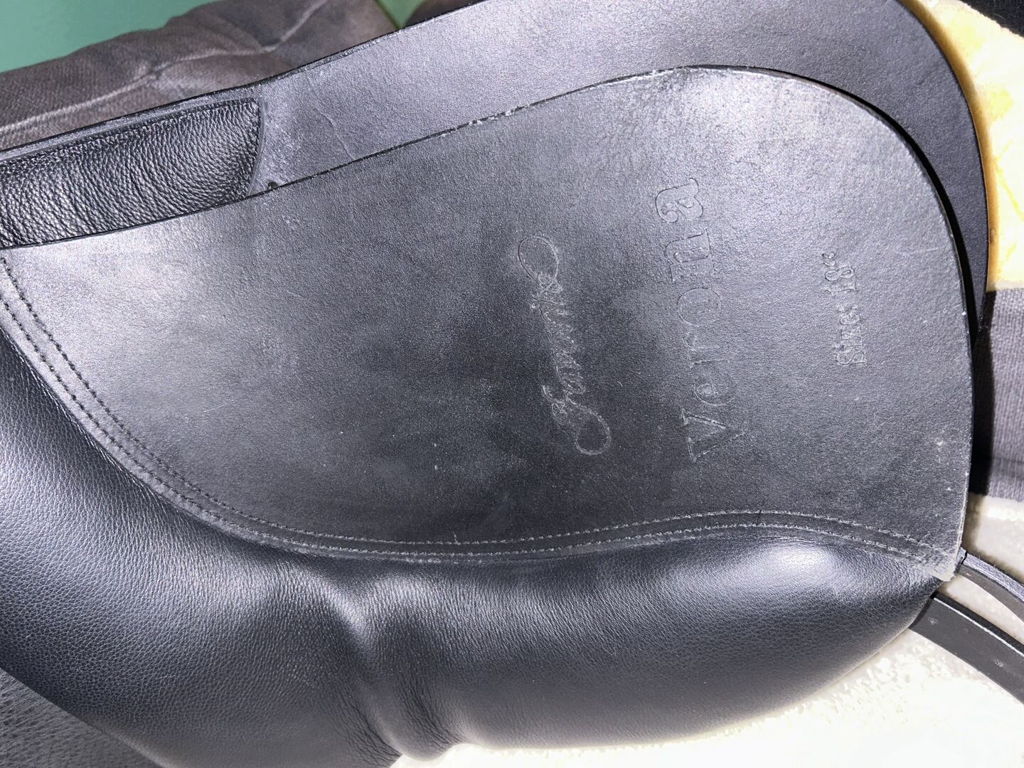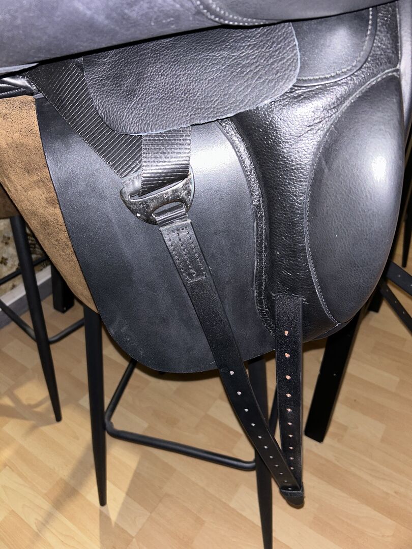 Dressage saddle "Favorito" Verona 18" Unused - I am selling a new and unused dressage saddle. Unfortunately, the saddle doesn't fit my horse's back and has been hanging around useless for a while now. The gullets are interchangeable. The original gullet plate is for a chamber width of 32 cm. There is also a blue gullet plate for a gullet width of 29 cm.