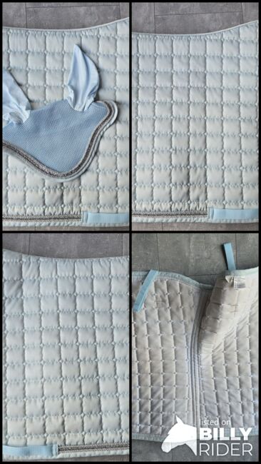 Dressage saddle pad with fly ears - Light blue, glittering dressage set with fly ears from the CM Equestrian brand.