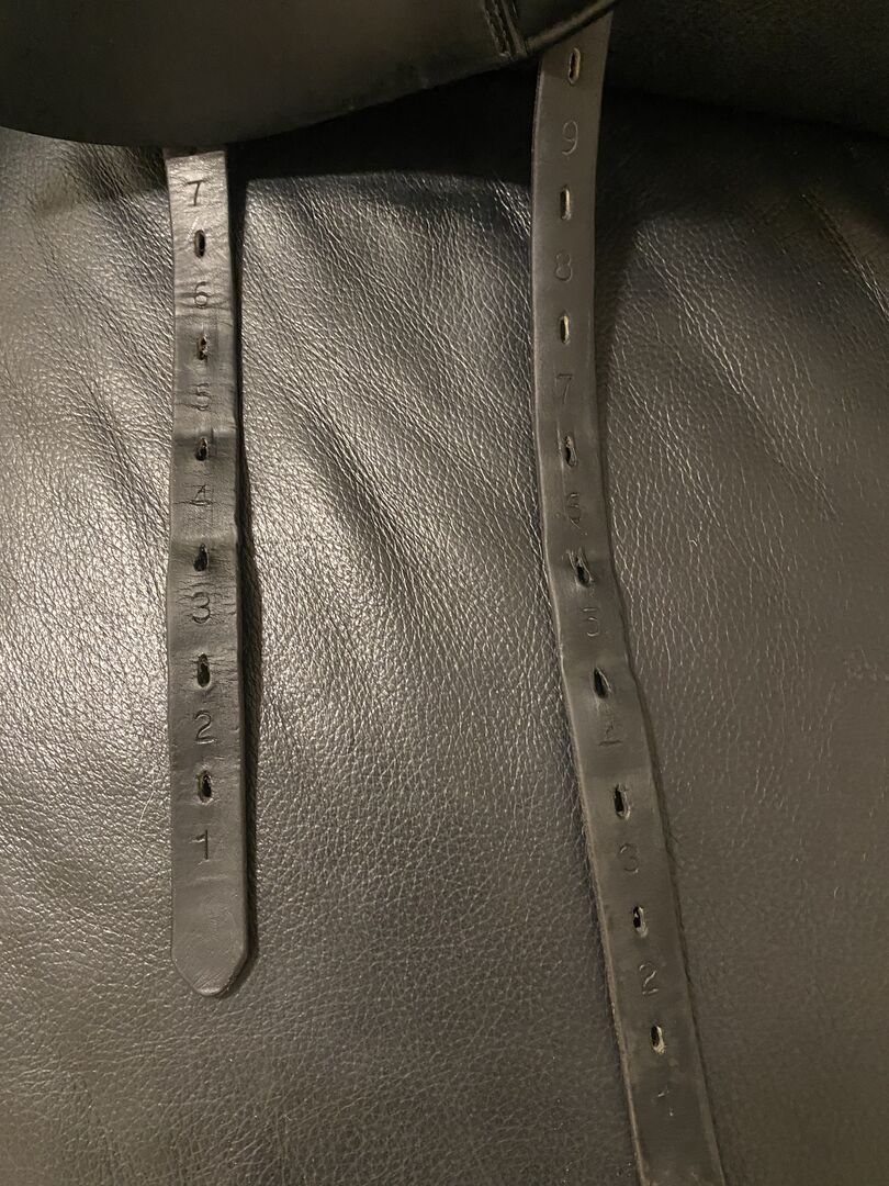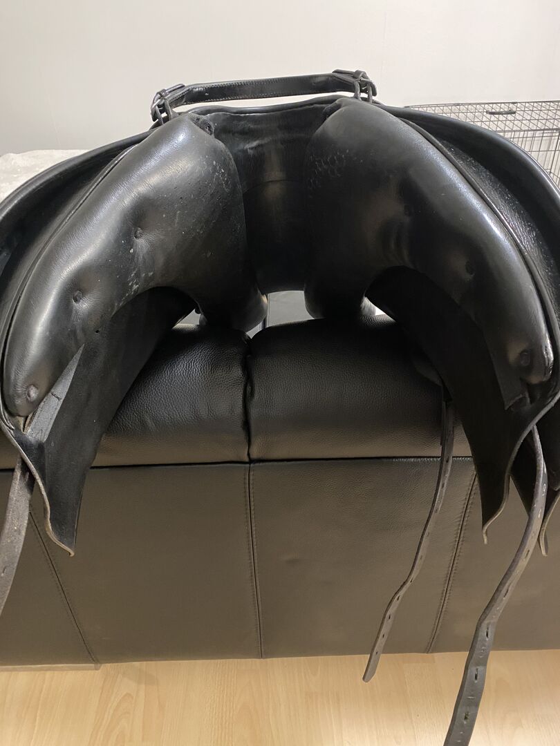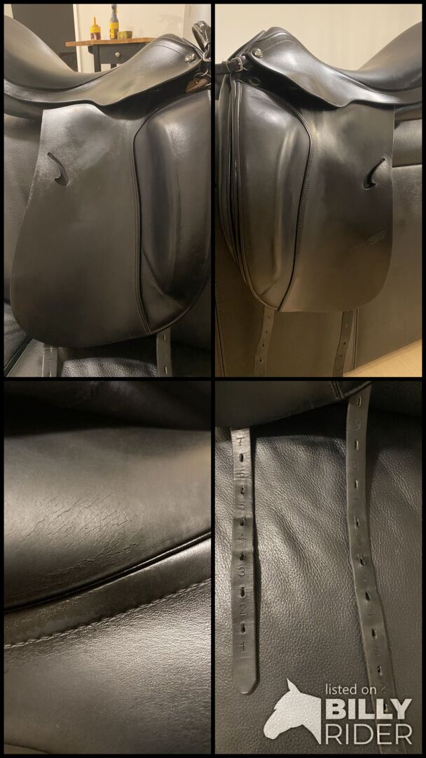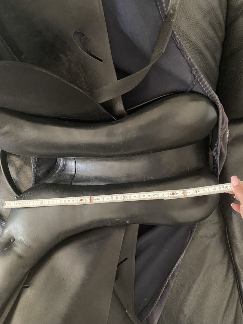 The chamber is 32 with a 17 inch seat, it was on a German Riding Pony with a strong shoulder and wide withers. Very suitable for horses with short backs due to its short contact area and panels that taper out towards the top. The saddle is from 2013, I bought it used myself back in 2015 and have always looked after it since. He has normal signs of use and on the right side in the seat small superficial cracks. (See picture) Which were regularly checked by the saddler but are not larger or gone on.