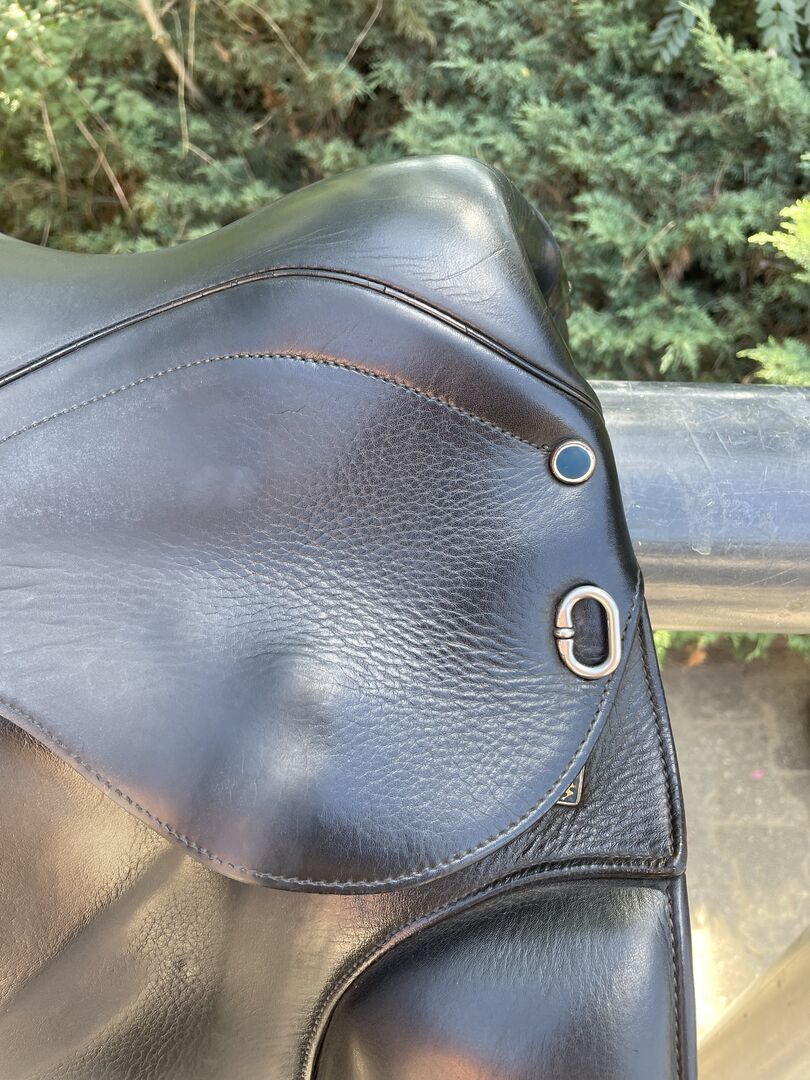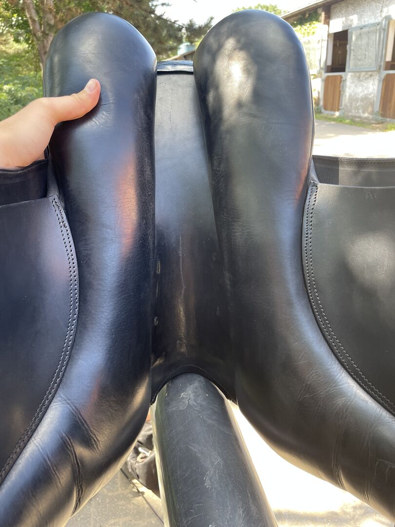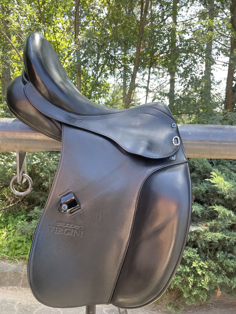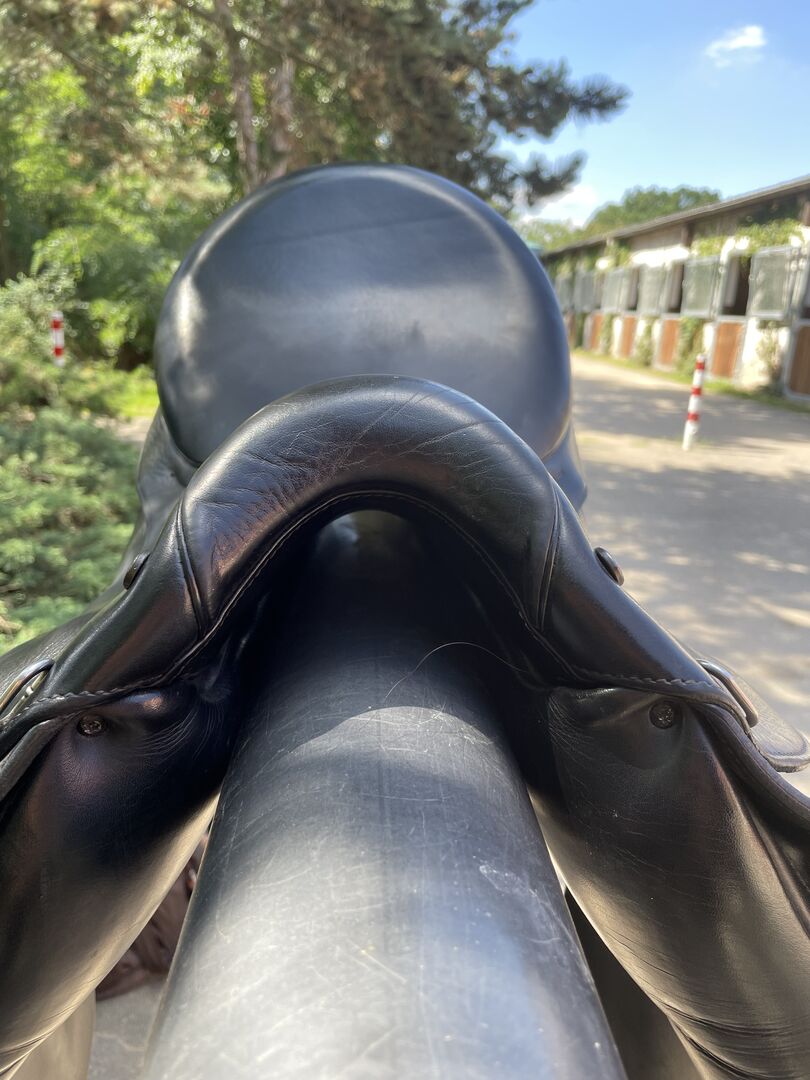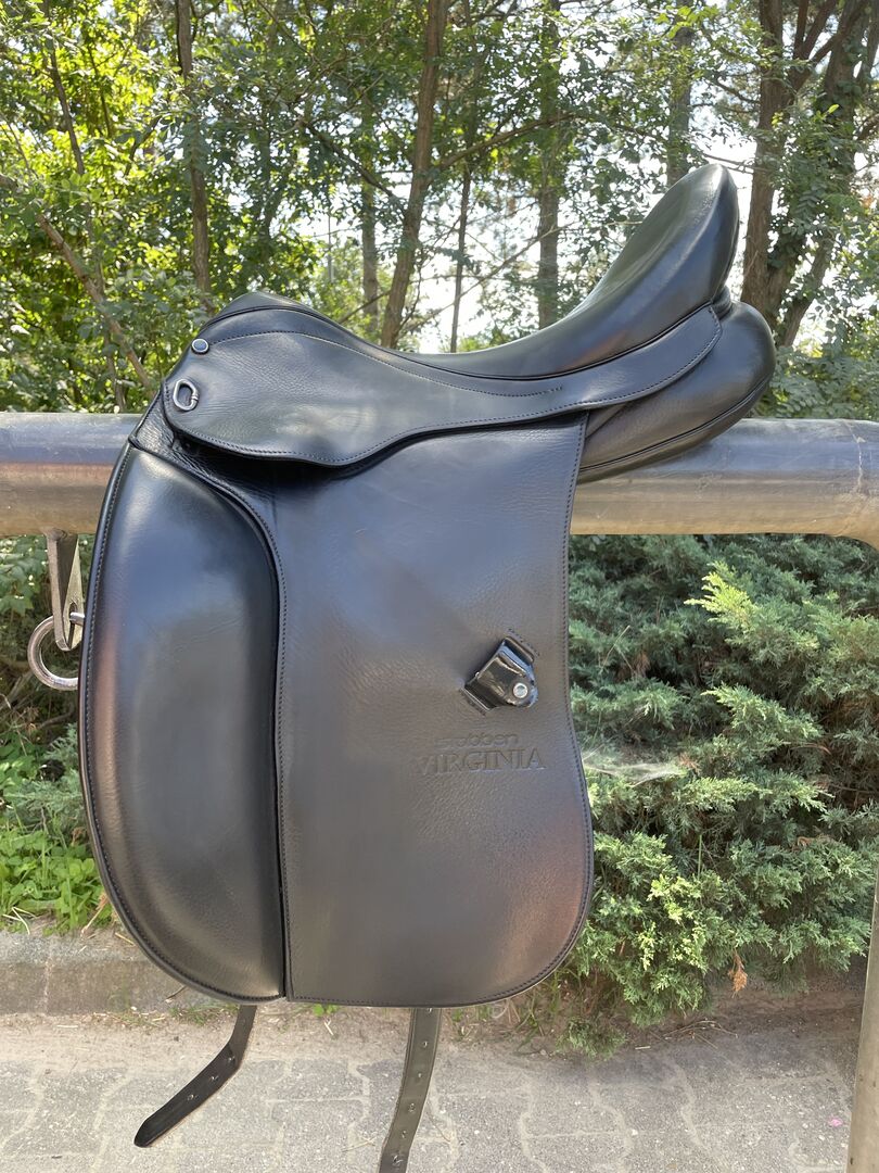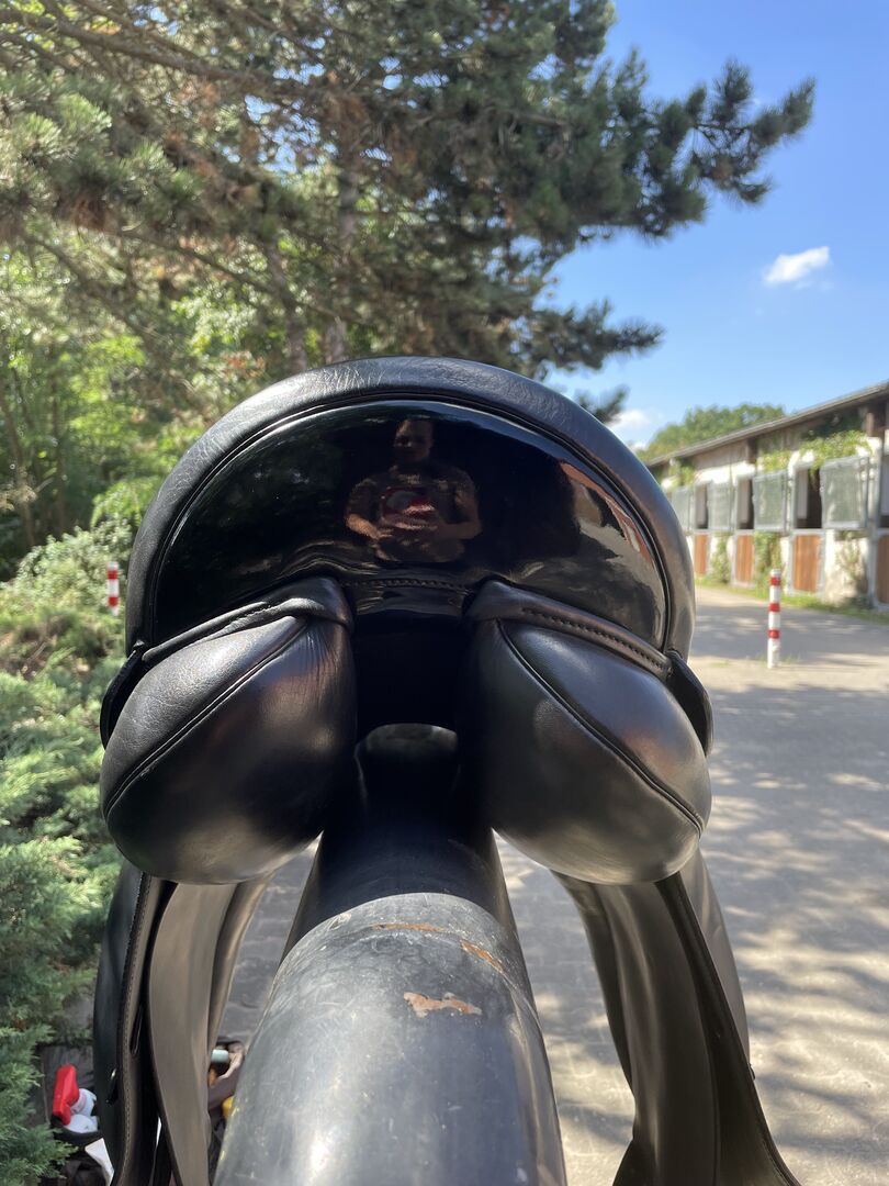 Dressage saddle Stübben Virginia - I sell my used Stübben dressage saddle model Virginia. He has a chamber width of 29 and was changed once from 30 to this. This can be changed again at any time. The seat has 17.5 inches. The saddle is black and has discreet varnish details (see pictures). Due to the soft leather he has a very high seating comfort. I bought him in 2018, so he is still in first hand. He has always been stored dry, regularly maintained and checked by a saddler and adjusted if necessary. The saddle has always fit my horse wonderfully. The original price was 2.400€. Due to regular use, it has small traces of use, but these do not affect the very well-kept condition. The price is negotiable. If interested, the saddle can be shipped.